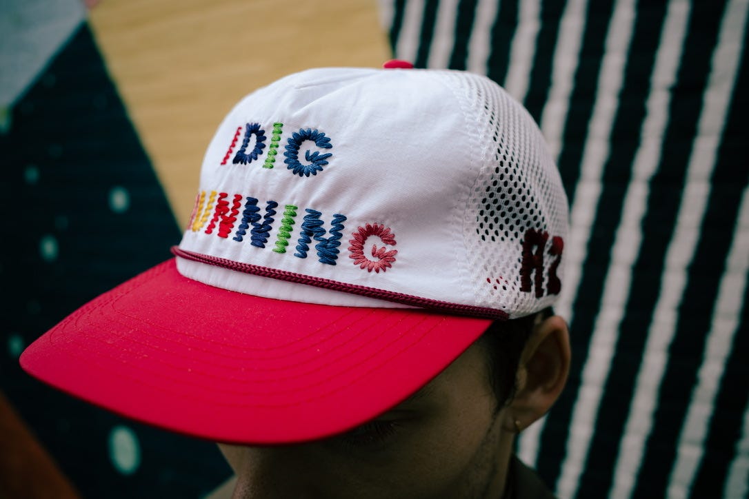 I love the whimsical world Alex Zono has built up with this brand. The hat is a great fit and shape, super airy, and adds a pop of color to any outfit. These are basically always sold out, so get on his email list if you want one.