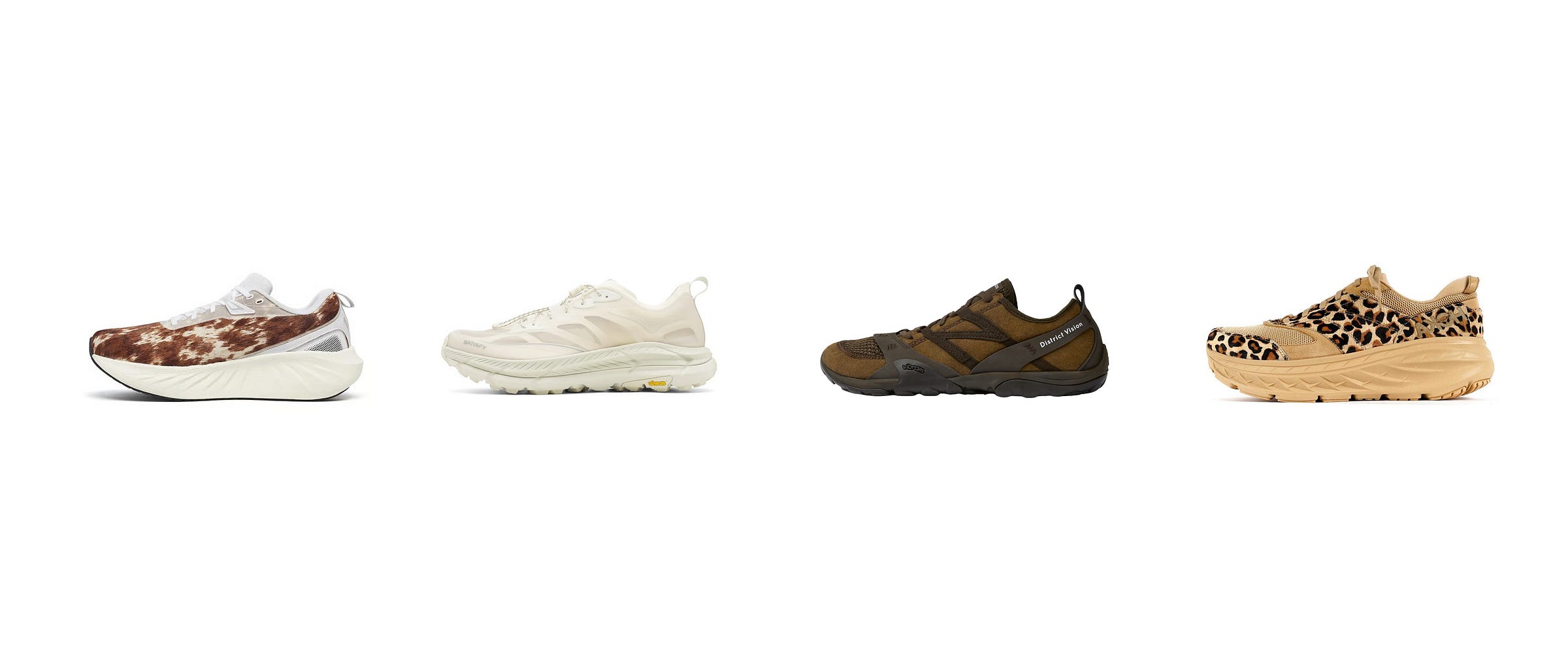 Hoka Bondi EG Leopard Print - I got these many years ago and have held on to them despite being torched from a few hundred miles and lots of extracurricular time. Sadly only available now on secondary markets. I can wear these with shorts or jeans.