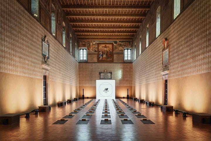 New balance popped up at the Rome Marathon. Surprising to me, but seems like any race now is a good opportunity for buzz. They invited much of the running IG accounts, including the OG and fellow newsletter writer Runners Highest to cover it. NB highlighted the Ellipse trainer in the beautiful Corsie Sistine, which was built in thr 15th century as a hospital. They had a similarly sick townhouse for London last year. A temple of health!
