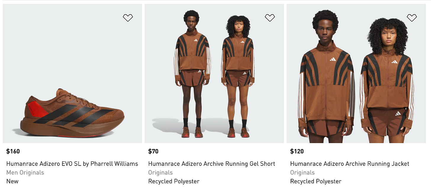 Pharrell Williams’ Humanrace - adidas line of a zillion things, including now running stuff (see below)