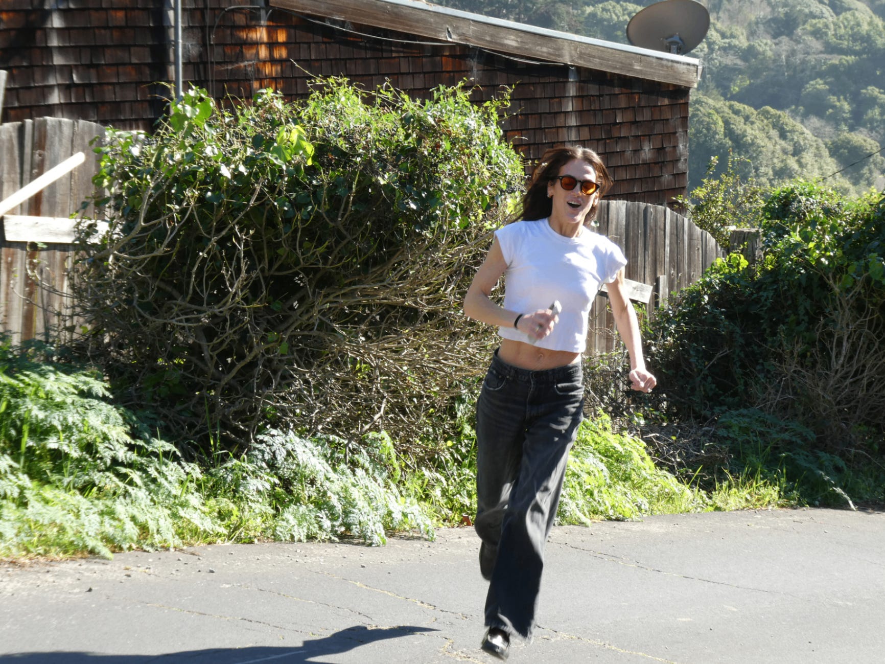 I especially appreciate their Spring shoot BTS. Here’s a gem of Chief Design Officer, Ardith sprinting along in jeans and loafers.